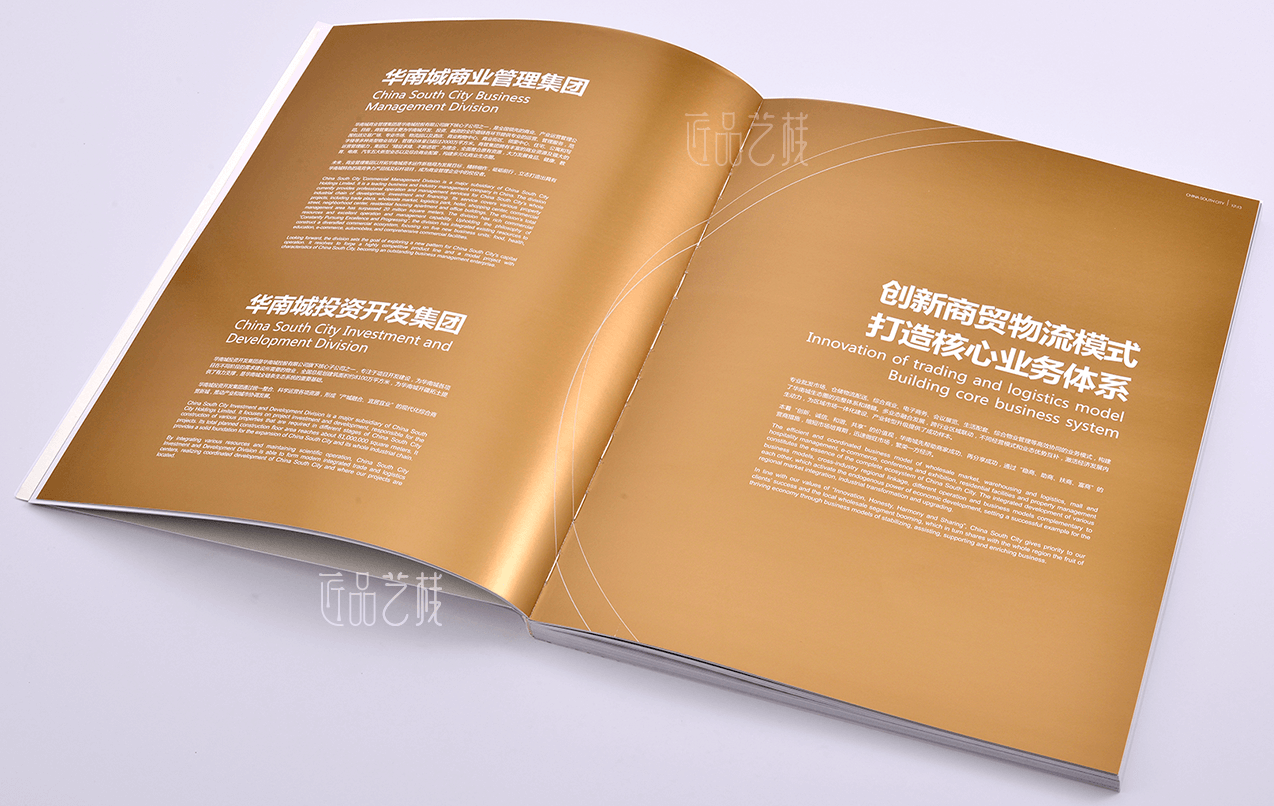 華南城控股有限公司是一家在香港聯合交易所上市的綜合商貿物流企業是中國規劃、建設、運營大型綜合商貿物流中心的領航者,在此畫冊印刷,針對業務涵蓋多領域等生態系統特征,采用專金、專銀等印刷,以及特種紙、燙紅金等特色工藝搭配,準確的體現出華南城集團的品牌實力和宣傳特色。