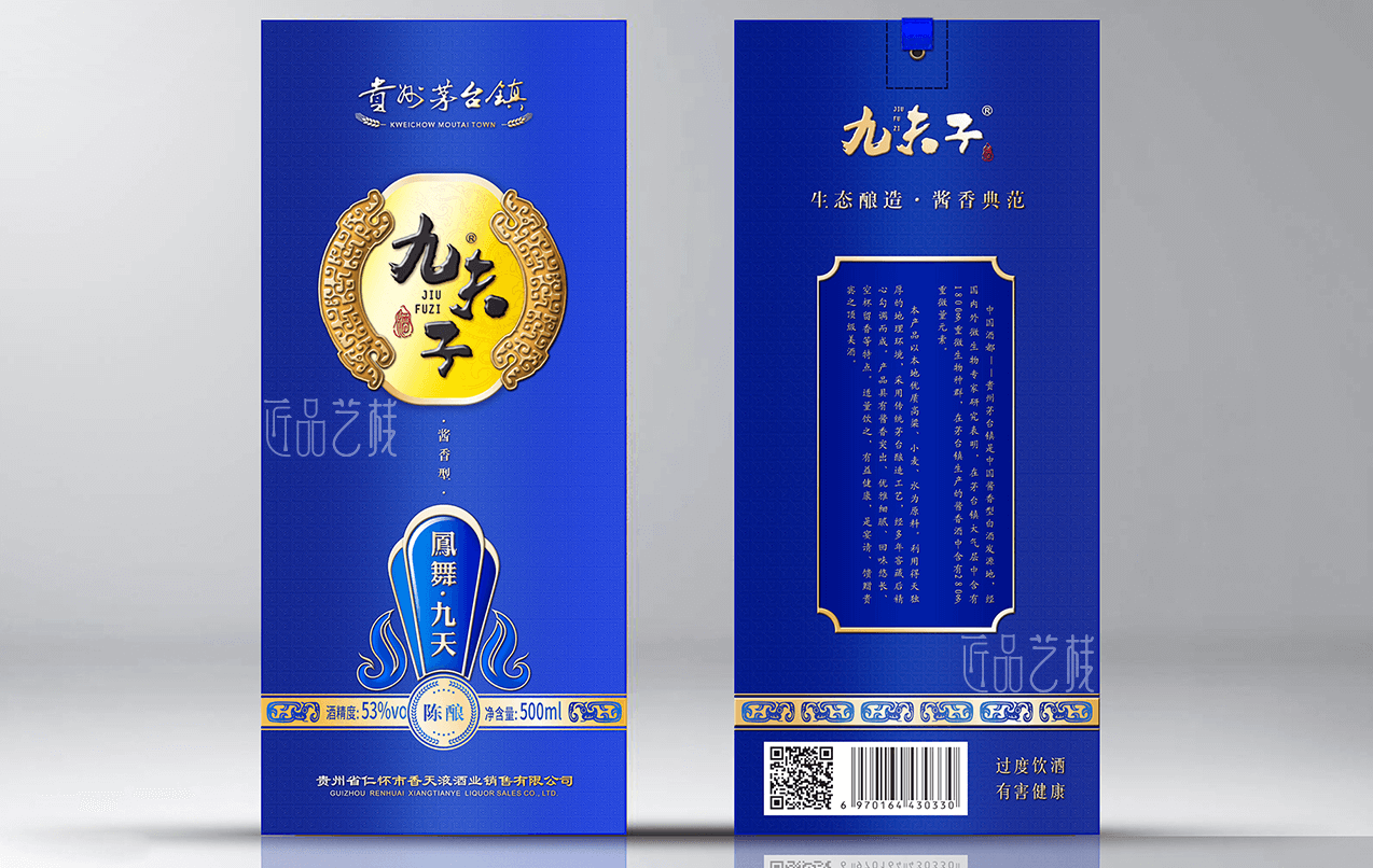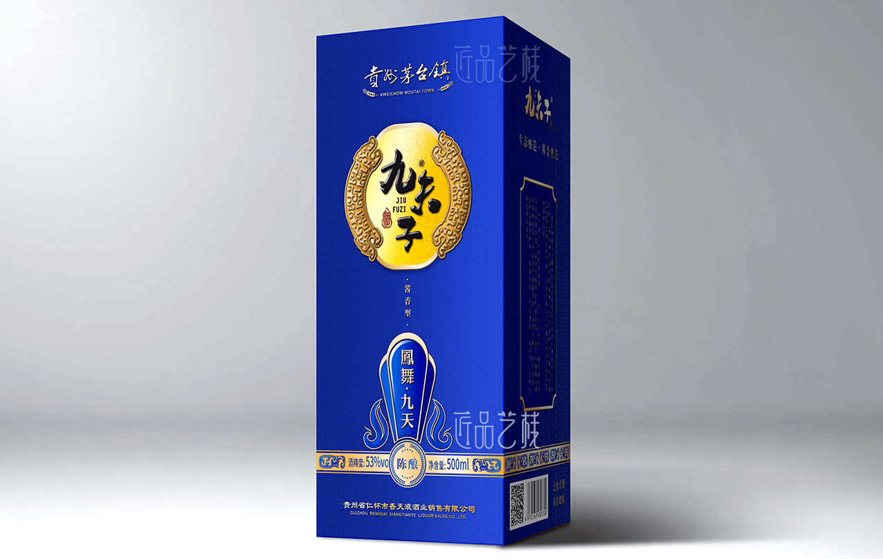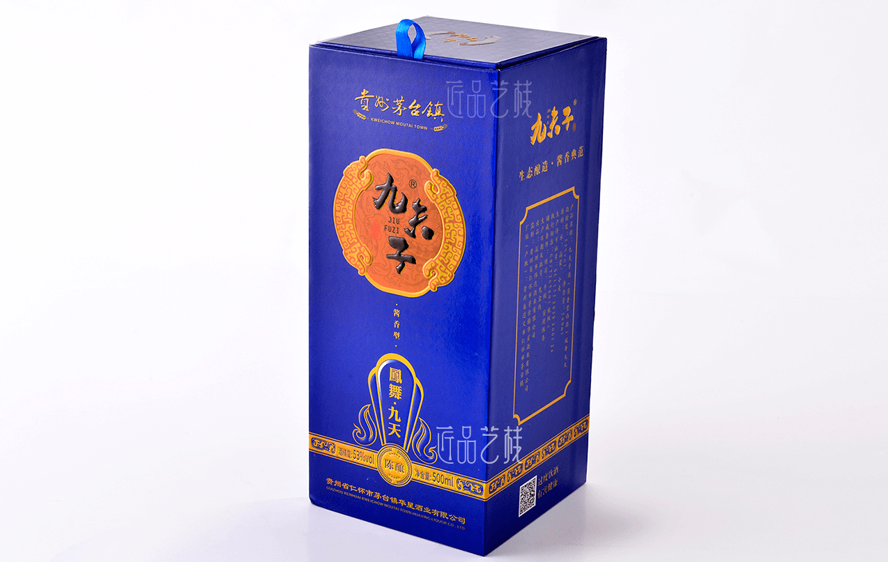 貴州茅臺鎮白酒品牌九夫子酒,選用茅臺鎮本地優質糯高粱和小麥,取水于赤水河水,具有醬香突出、優雅細膩、空杯留香持久等獨特風格。在九夫子酒品牌產品包裝設計定做中,采用一言九鼎、鳳舞九天、九五之尊系列分類,設計統一的品牌圖標,并根據每個系列的特點和定價,設計不同包裝形態、元素和色彩的包裝酒盒,形成統一的品牌傳播形象和提升產品價值。