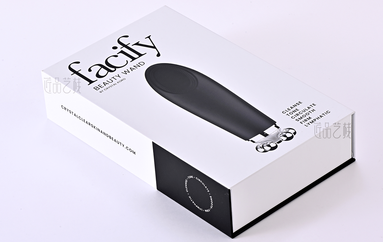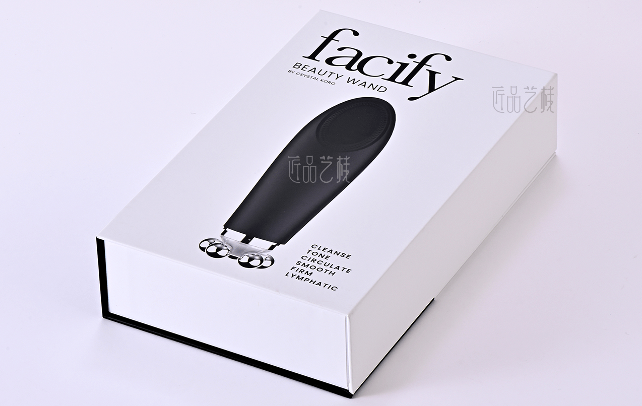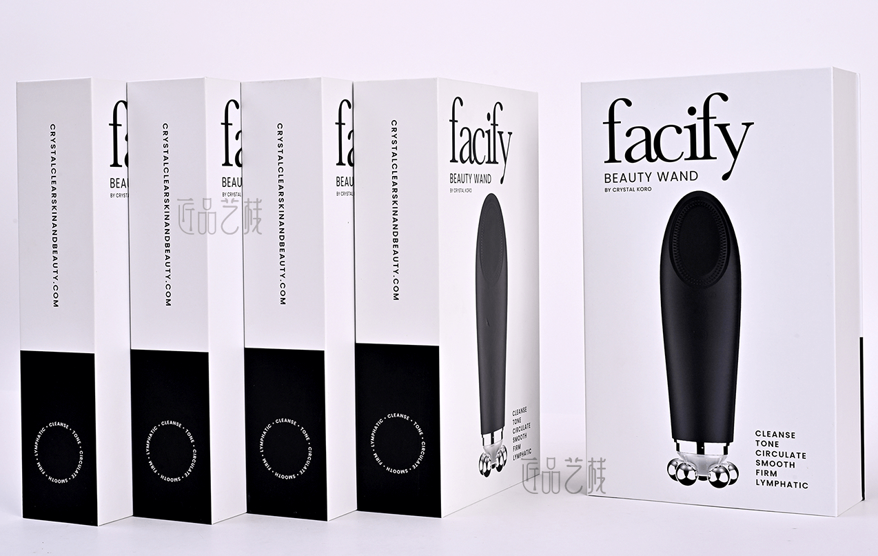 歐美醫美品牌——facify是一立足于歐美市場的知名醫美品牌,旗下自設數十家美容連鎖機構,在與其按摩棒包裝盒印刷定制中,佳潤隆包裝印刷&匠品藝棧采用展開式書型盒結構,以及高端品質的吸塑內托,搭配其簡約、大氣的歐美風格,使其達到既簡便使用,又能傳播品牌價值和提升產品溢價能力。