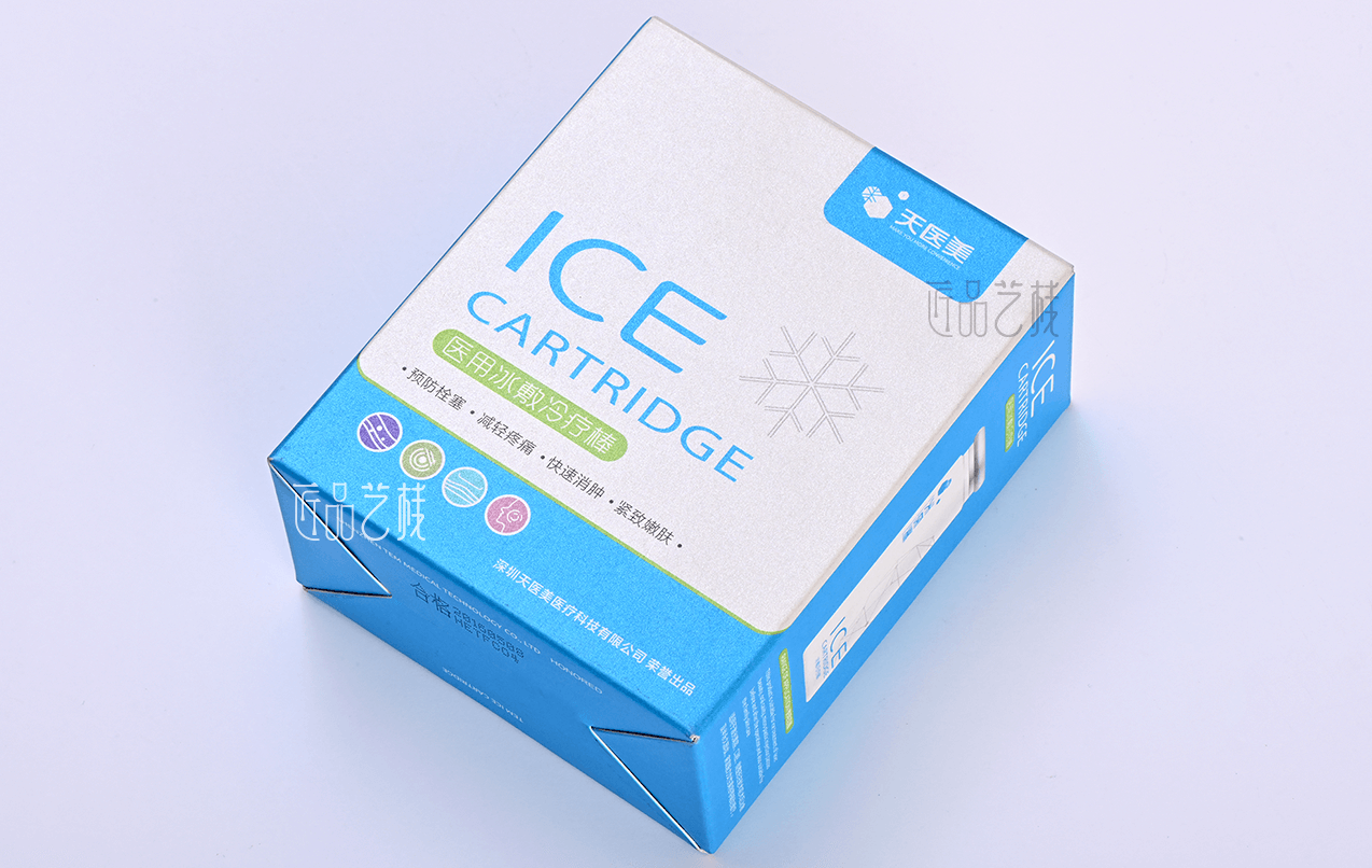 天醫美醫療品牌,隸屬于深圳天醫美醫療科技有限公司,主營醫療器械、醫療設備等技術研發與銷售。在天醫美品牌醫用冰敷冷療棒產品包裝盒印刷定制中,佳潤隆包裝印刷&匠品藝棧采用品牌冰面珠光紙,UV油墨和UV印刷烘干方式,使其產品包裝盒更貼切于產品冰敷冷療的氣質,以及給人們帶來健康和美膚的品牌寓意。