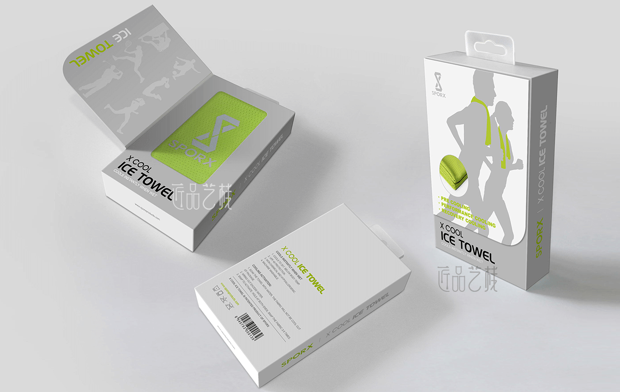 sporx運動毛巾品牌,是深圳市圣侍體育文化發展有限公司旗下核心品牌,該毛巾以吸水性、透氣性強,冰涼、干爽為特點,在其產品包裝盒設計時,深圳佳潤隆印刷&匠品藝棧采用人物輪廓圖與毛巾結合的創意方式,直接體現產品的運用場景,同時在印刷中采用專銀、PVC透明窗等工藝,加強sporx在銷售終端的品牌銷售力和購買體驗。