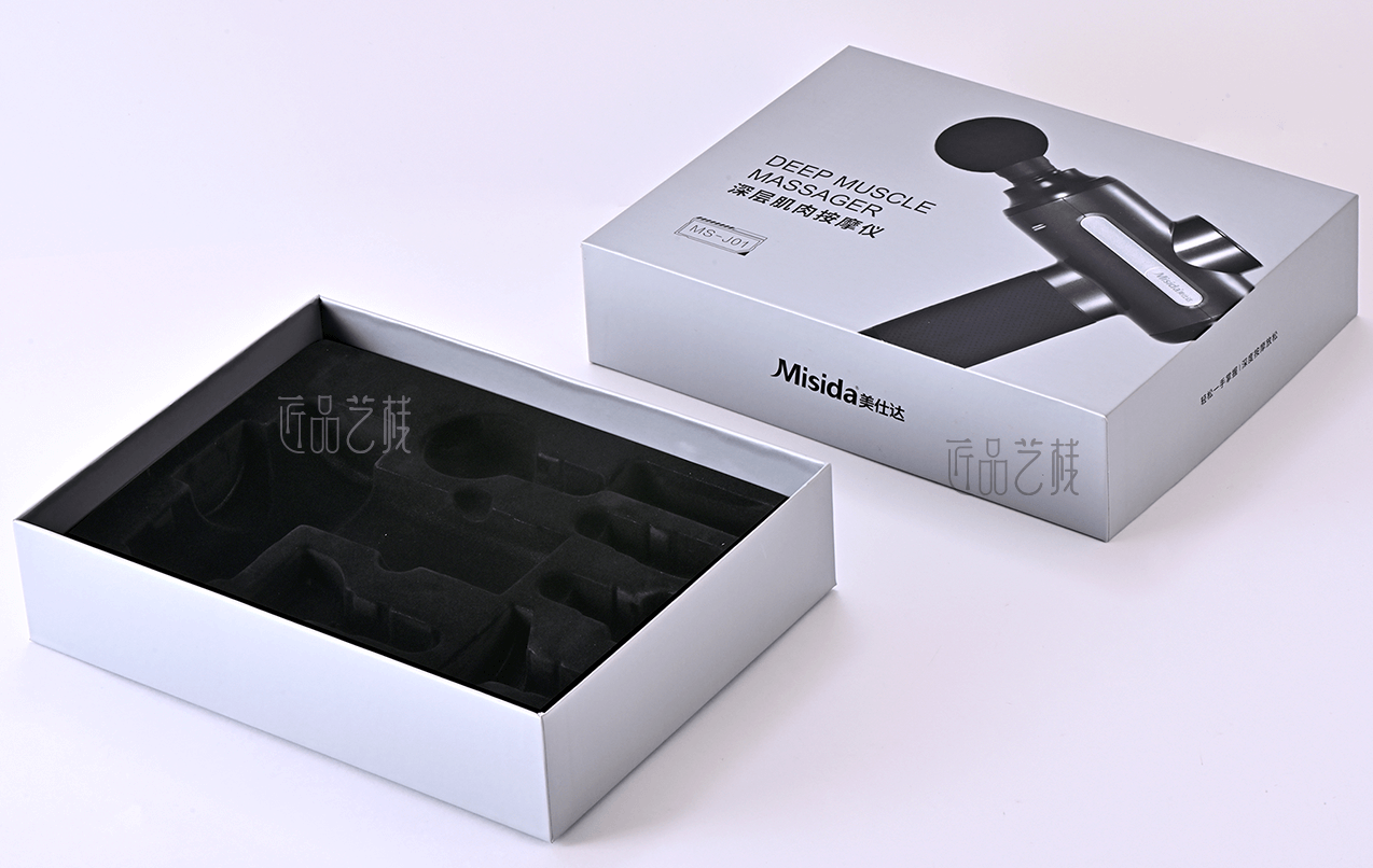 深圳悅來科技有限公司主打品牌——美仕達大健康品牌,佳潤隆包裝印刷&匠品藝棧長期合作企業之一,在其按摩儀產品包裝盒印刷定制中,我們采用硬卡紙精裝的方式,海德堡五色機專銀印刷,結合逆向UV等工藝,使其襯托出相應產品——深層肌肉按摩儀的厚重感和高端感,大力提升該產品在行業領域的競爭力和品牌氣質。
