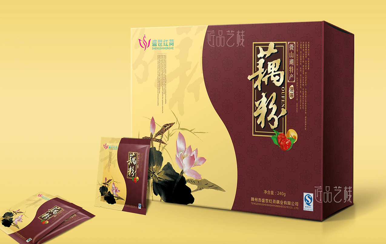 藕粉是久負盛譽的傳統滋養食品,營養價值高,藥療作用也很好,且味道鮮美,盛世紅荷藕粉品牌,是山東龍頭企業旗下核心產品品牌,在與其包裝盒設計定制中,我們根據其不同的市場與渠道定位,規劃設計系列藕粉品牌產品包裝盒和禮盒,以茶藕為核心貫穿元素,以傳統中國風和現代的高端工藝,準確體現盛世紅荷藕粉的產品品質和品牌氣質。