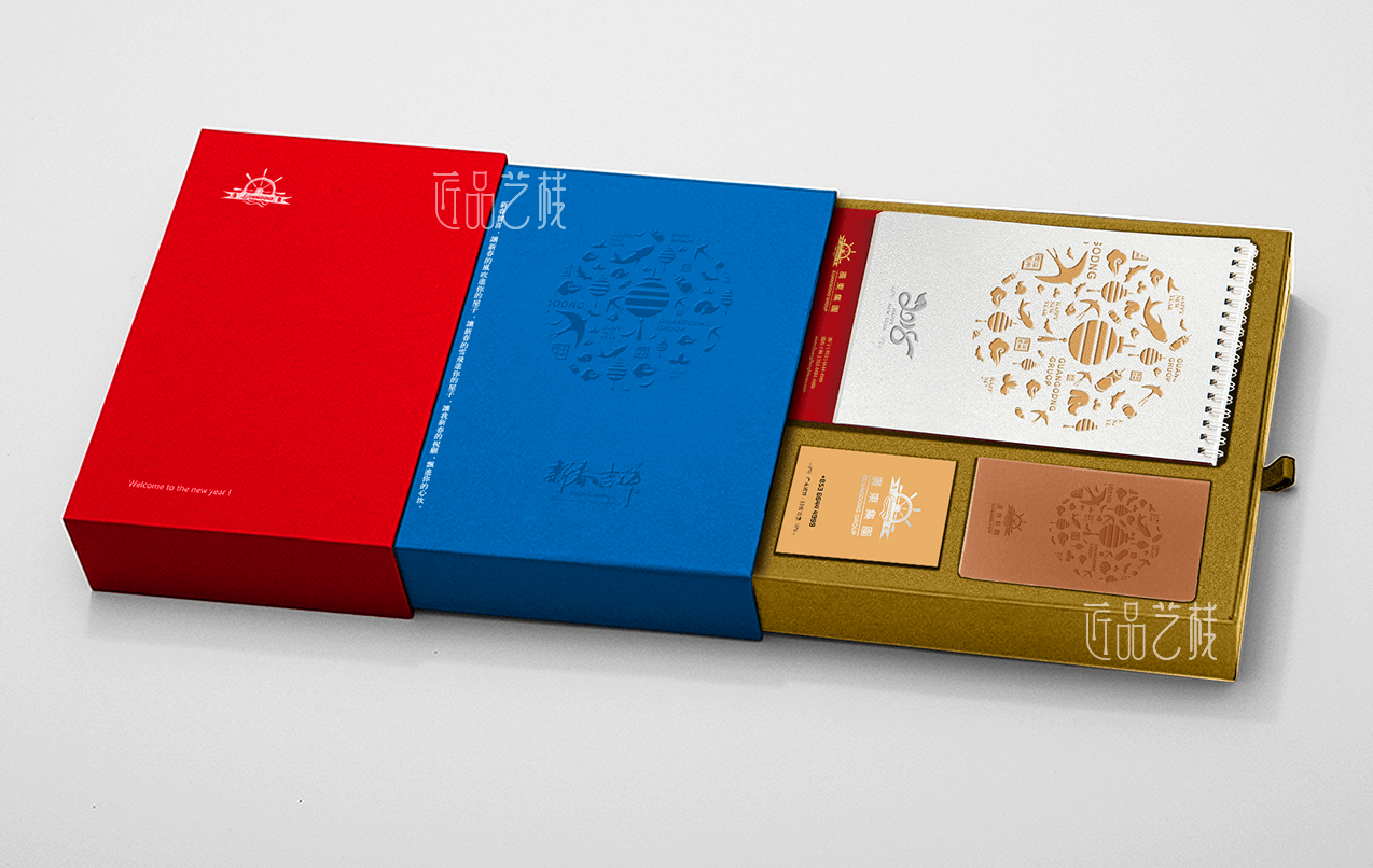 廣東集團扎根香港,致力提供“以客為尊”的高端旅游服務,打造多元化的服務版圖包括:全球尊貴商務旅游,世界奢華餐飲文化,基于該禮品包裝盒是廣東集團給到貴賓客戶一年一次的高端禮品,我們采用雙抽屜盒的創意盒形精裝、特殊工藝和紙張為外盒,內部裝配邀請函、筆記本、利是封等新年禮品,創意新年吉祥的主題和元素,以簡約、高端、大氣的風格進行設計定制,使套禮盒以統一風格、奢華品質呈現于世。