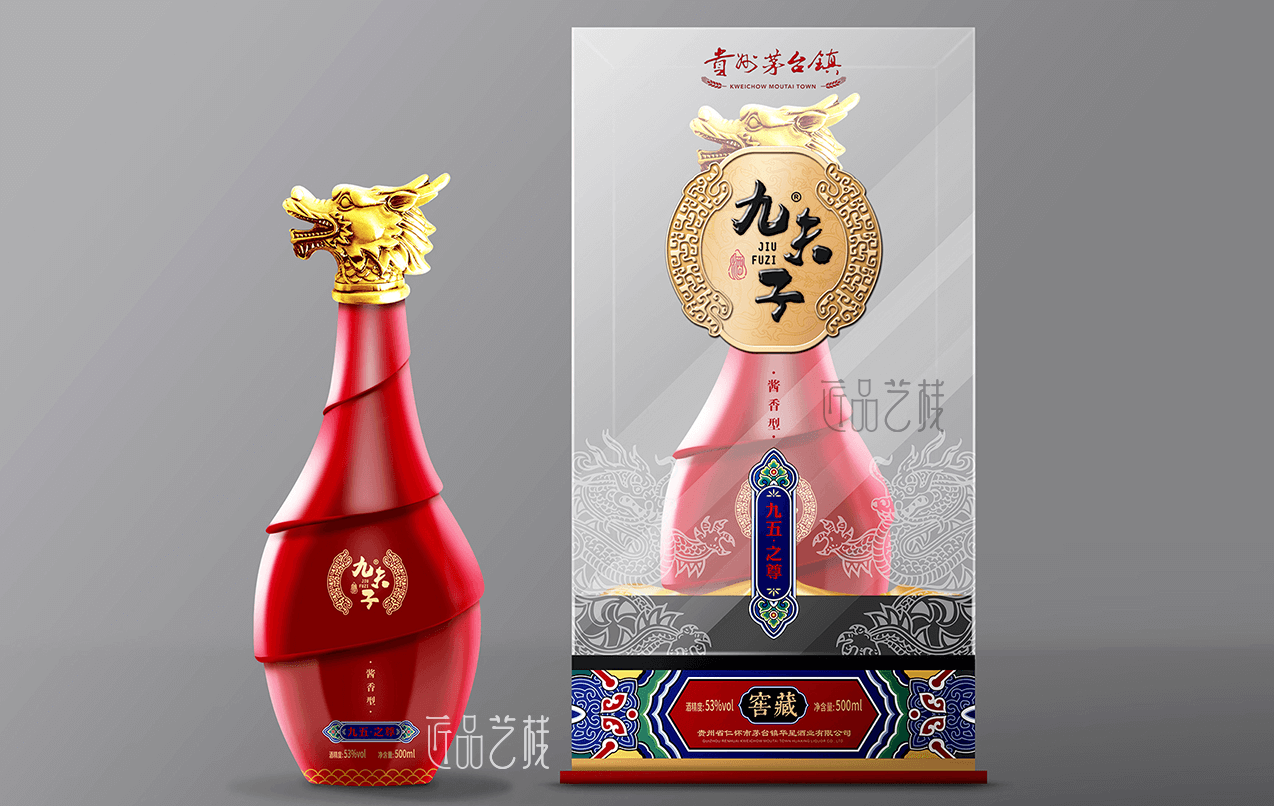 九夫子酒品牌,選用茅臺鎮(zhèn)本地優(yōu)質糯高粱和小麥,取水于赤水河水,具有醬香突出、優(yōu)雅細膩、空杯留香持久等獨特風格。在九夫子酒品牌產品包裝設計定做中,采用一言九鼎、鳳舞九天、九五之尊系列分類,設計統(tǒng)一的品牌圖標,并根據每個系列的特點和定價,設計不同包裝形態(tài)、元素和色彩的包裝盒和酒店,讓其得到統(tǒng)一的品牌形象傳播和溢價的同時,又節(jié)省對應的生產成本。